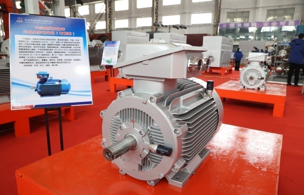 本次發(fā)布會(huì)展出的TBYC系列高效率隔爆型永磁三相同步電動(dòng)機(jī)(智能型)、TYC系列永磁三相同步電動(dòng)機(jī)(智能型)產(chǎn)品,依靠永磁體所提供的磁能替代了傳統(tǒng)電機(jī)電勵(lì)磁產(chǎn)生的磁能,具備電機(jī)損耗低、運(yùn)行可靠性高的特點(diǎn)。在負(fù)載較低時(shí),產(chǎn)品仍可保持較高的運(yùn)行效率和功率因數(shù),解決了機(jī)械設(shè)備在低負(fù)荷時(shí)能耗消耗大的問題。其中部分規(guī)格可配備智能監(jiān)測終端產(chǎn)品,可實(shí)時(shí)采集加速度、速度、溫度等狀態(tài)數(shù)據(jù),內(nèi)置邊緣智能感知算法,可提供設(shè)備概覽、實(shí)時(shí)狀態(tài)監(jiān)測、智能故障診斷、早期故障預(yù)警、全生命周期管理等核心服務(wù)。同時(shí),產(chǎn)品效率指標(biāo)能夠滿足1級(jí)能效要求,在電動(dòng)機(jī)的整個(gè)生命周期內(nèi),可以為用戶節(jié)約可觀的電費(fèi)以及各種設(shè)施配套費(fèi)用,是工信部“能效之星”推薦產(chǎn)品,可應(yīng)用于石油化工、電力系統(tǒng)、紡織、工礦企業(yè)以及拖動(dòng)風(fēng)機(jī)、泵類等機(jī)械。