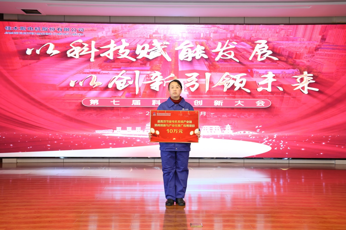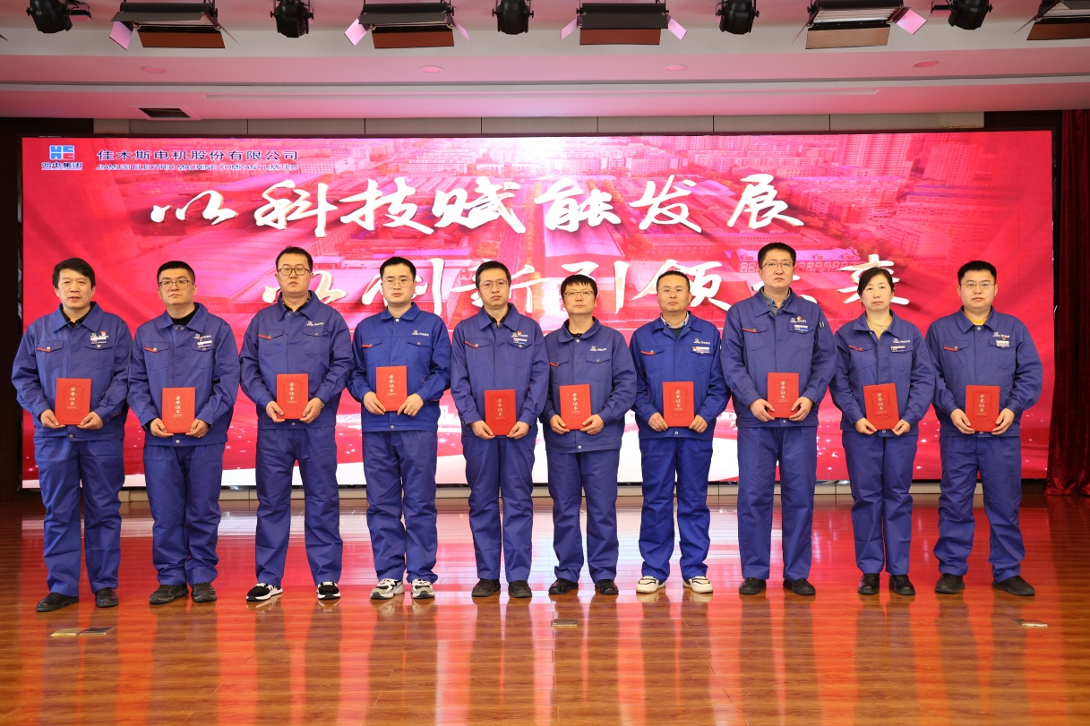3月11日,哈爾濱電氣集團佳木斯電機股份有限公司(以下簡稱“佳電股份”)隆重召開第七屆科技創(chuàng)新大會,對佳電股份2022年度在科技工作上做出突出貢獻的集體和個人進行了表彰獎勵。獲獎代表對重大科技項目做了情況介紹與經(jīng)驗分享。佳電股份黨委副書記、副董事長、總經(jīng)理姜清海出席會議并講話。佳電股份副總經(jīng)理潘波做年度科技工作報告。佳電股份黨委副書記、工會主席劉漢成主持會議。佳電股份領(lǐng)導(dǎo)、有關(guān)單位中層領(lǐng)導(dǎo)人員及技術(shù)戰(zhàn)線全體科技人員參加會議。
