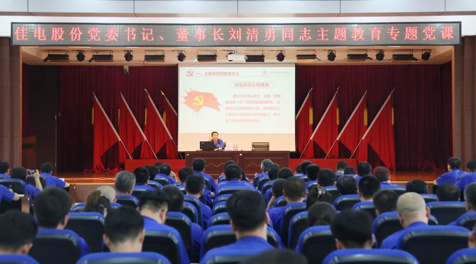 按照哈電集團黨委主題教育總體部署和佳電股份黨委主題教育工作安排,7月28日,佳電股份黨委書記、董事長劉清勇為領導班子成員、中層副職以上干部、各直屬黨組織支部委員、黨員代表、黨群工作部和紀檢組辦公室工作人員共300余人,講授了“不忘初心、牢記使命”主題教育黨課。集團第一巡回指導組成員錢曉亮參加了專題黨課。