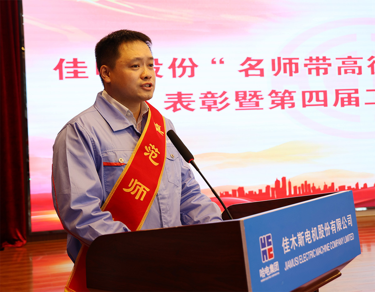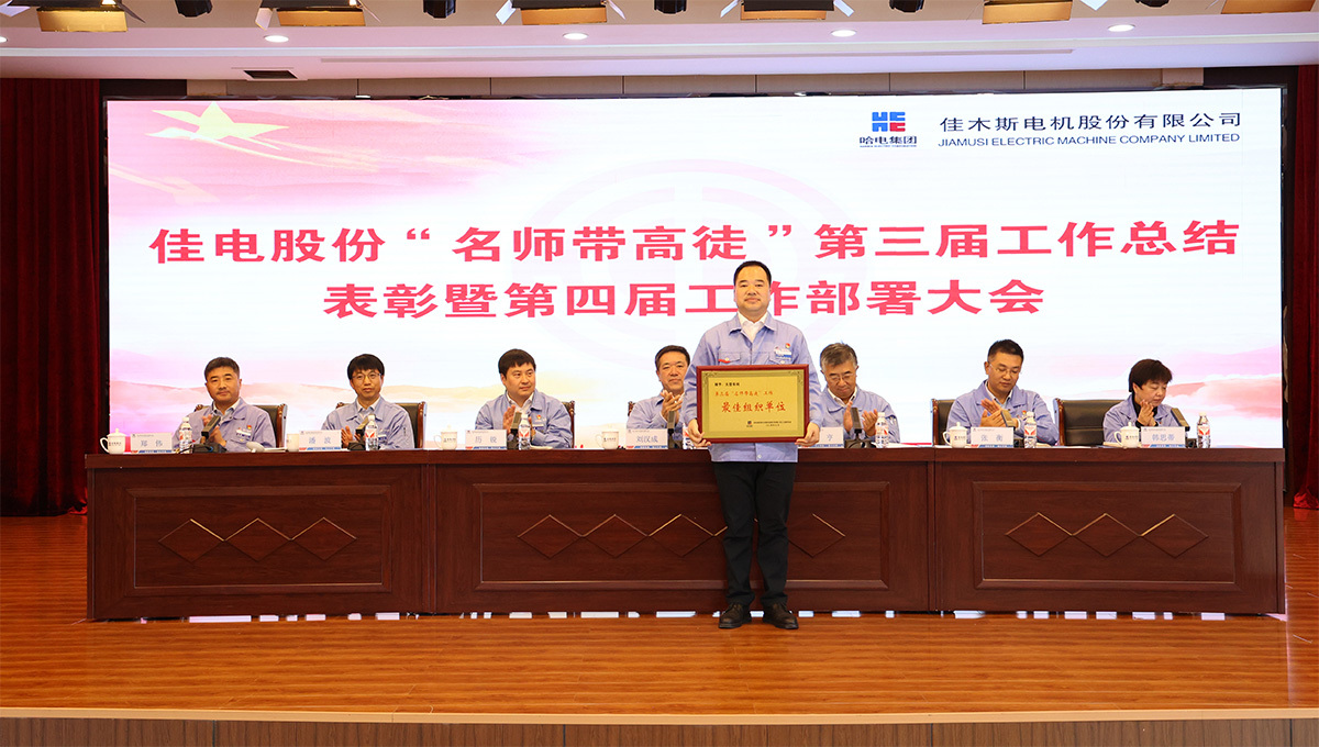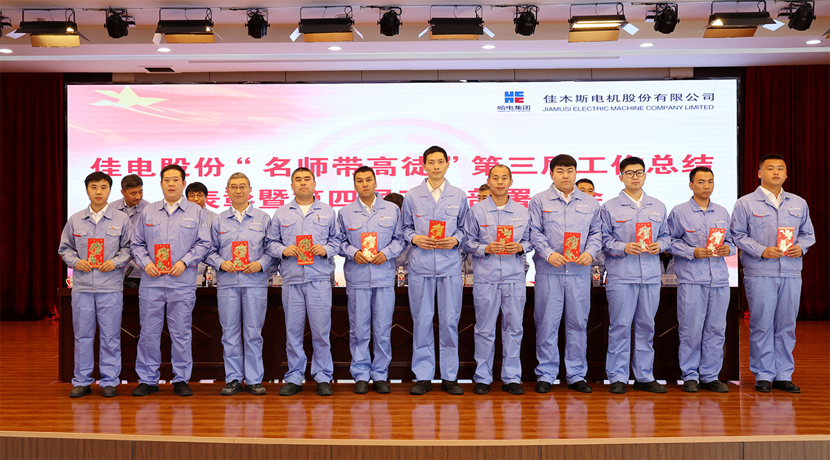 為深入學習貫徹黨的二十大和二十屆三中全會精神,貫徹落實習近平總書記關(guān)于產(chǎn)業(yè)工人隊伍建設改革的重要指示精神,大力弘揚“勞模精神、勞動精神、工匠精神”,充分發(fā)揮生產(chǎn)技術(shù)骨干人才的“傳幫帶”作用,9月27日,哈電集團佳木斯電機股份有限公司(以下簡稱“佳電股份”)召開“名師帶高徒”第三屆工作總結(jié)表彰暨第四屆工作部署大會。佳電股份黨委書記、總經(jīng)理劉漢成出席會議并講話,佳電股份黨委副書記、工會主席劉亨主持會議,佳電股份領(lǐng)導班子成員出席會議。
